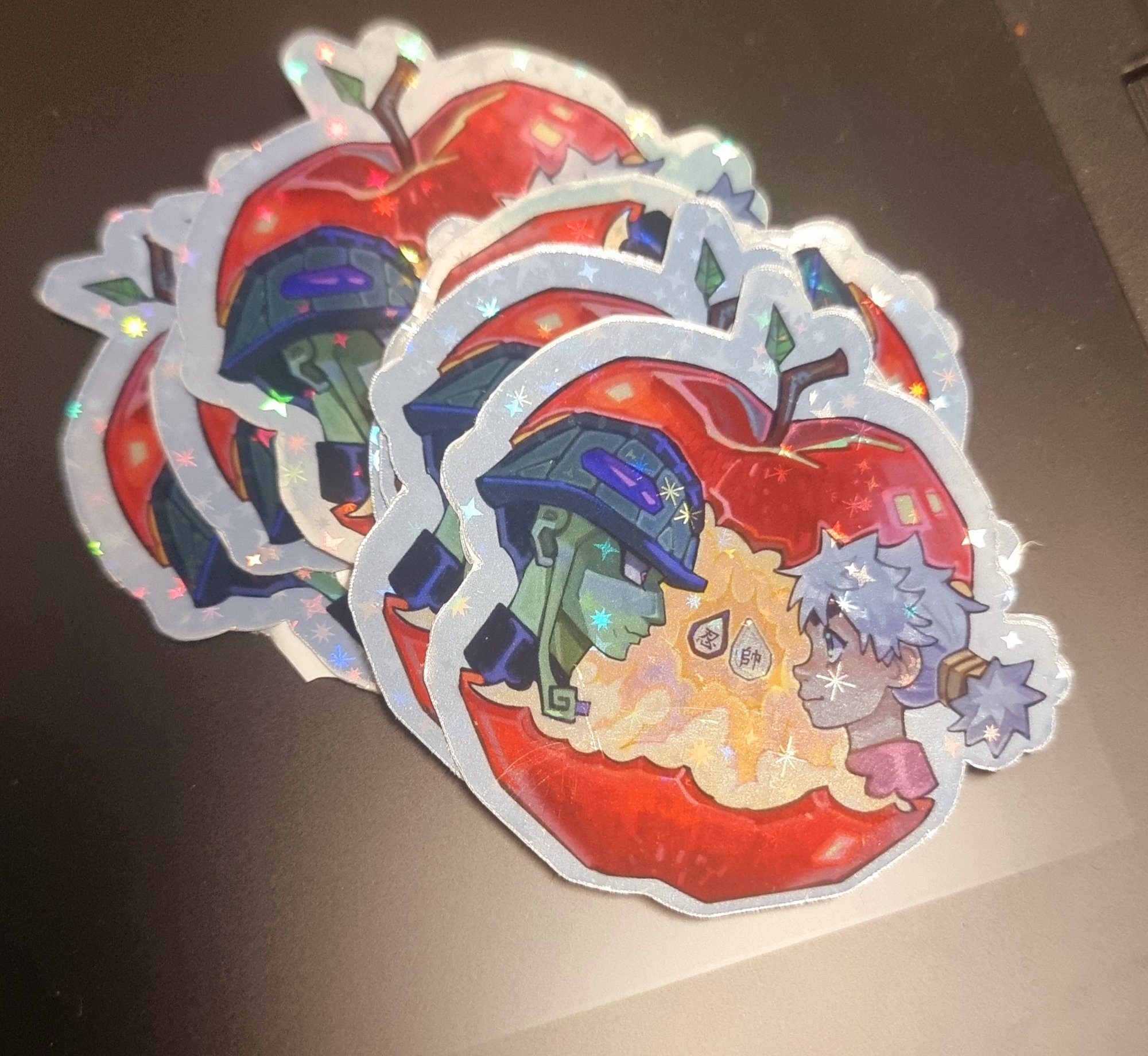 Sparkly holographic sticker.