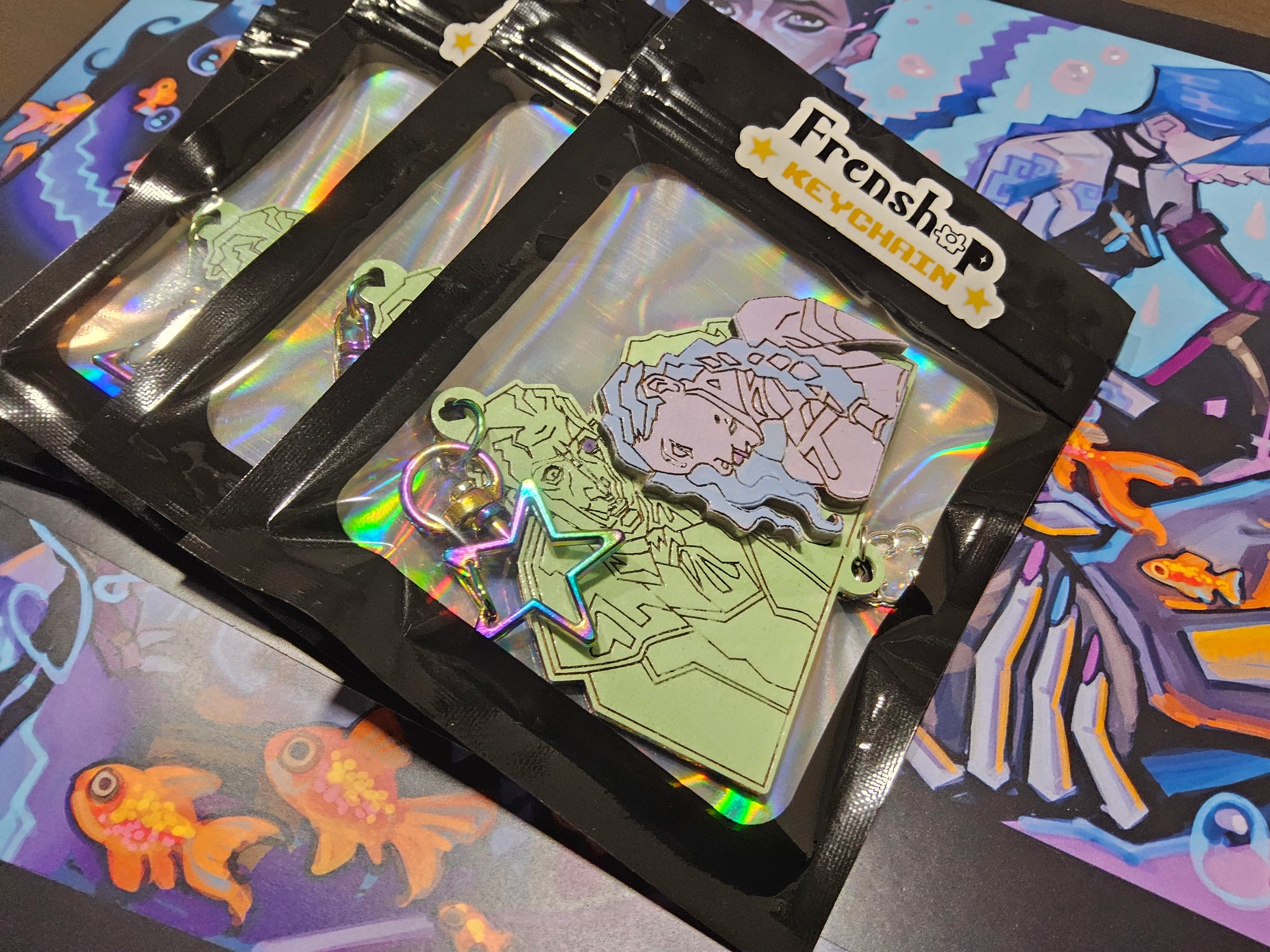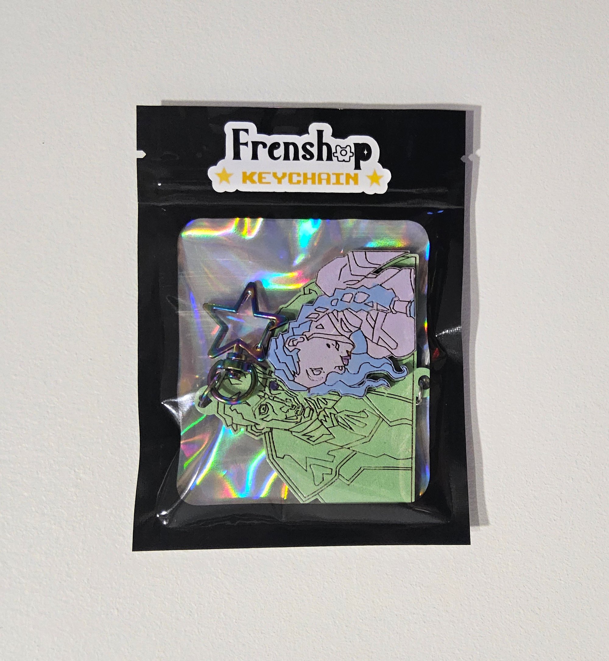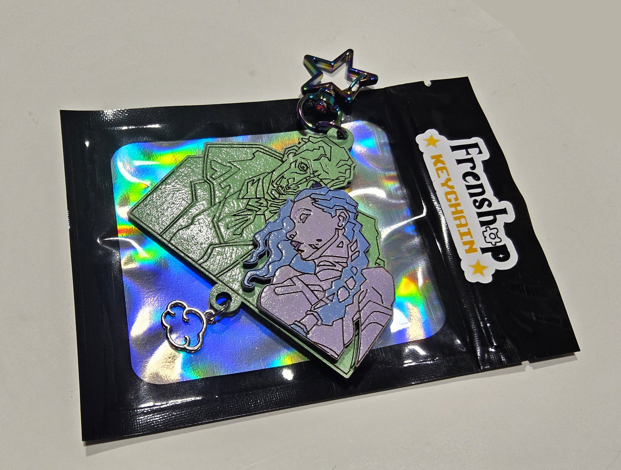 This keychain will have a star-shaped clasp and a silver cloud charm.